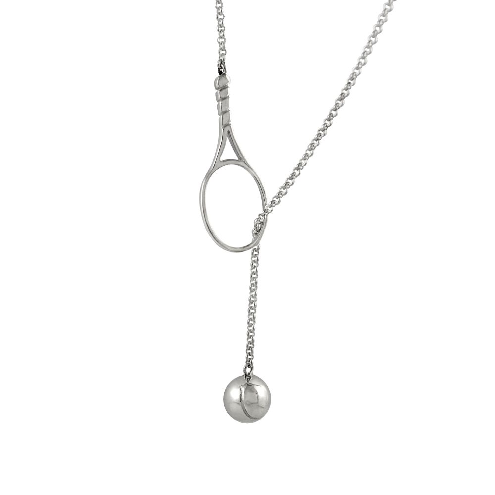 Colar de prata tipo Y com bola de tênis na ponta. O mais charmoso de todos! E não se preocupe, a bolinha está presa no comprimento exato para não machucar no meio da partida.