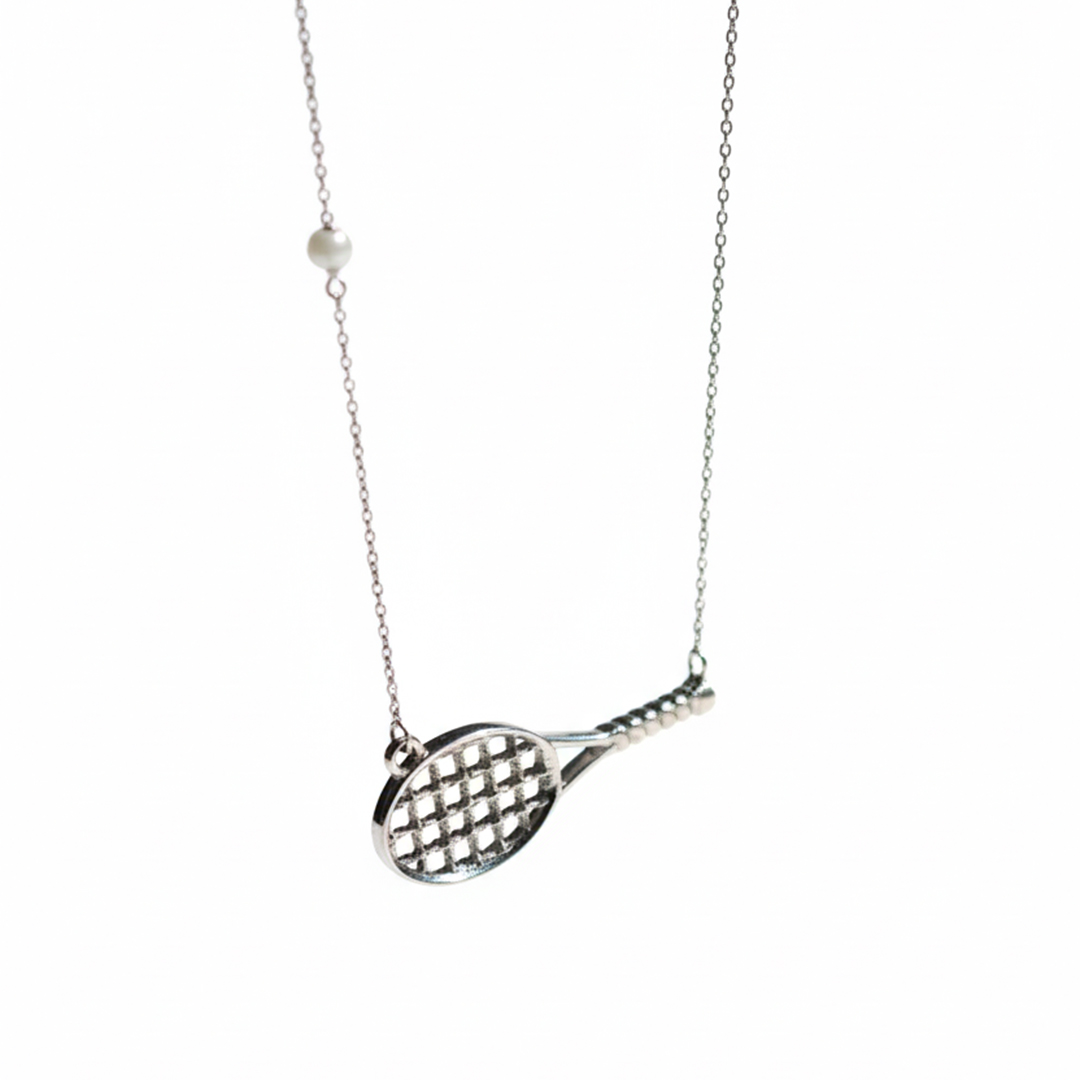 Feito em prata, apresenta o icônico pingente em formato de raquete com cordas entrelaçadas e acabamento polido, refletindo o estilo minimalista e sofisticado que define a essência da Match.
